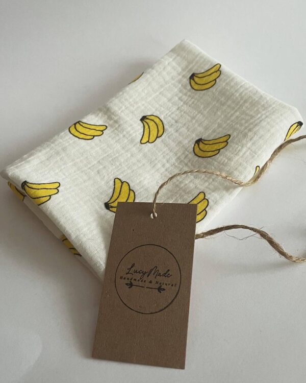 Pieluszka muślinowa z żółtymi bananami na białym tle, to prawdziwe must-have w wyprawce dla maluszka. Ten wesoły, owocowy wzór przyciąga wzrok i dodaje uroku naszej pieluszce, a jasne kolory pobudzają zmysły dzieci.