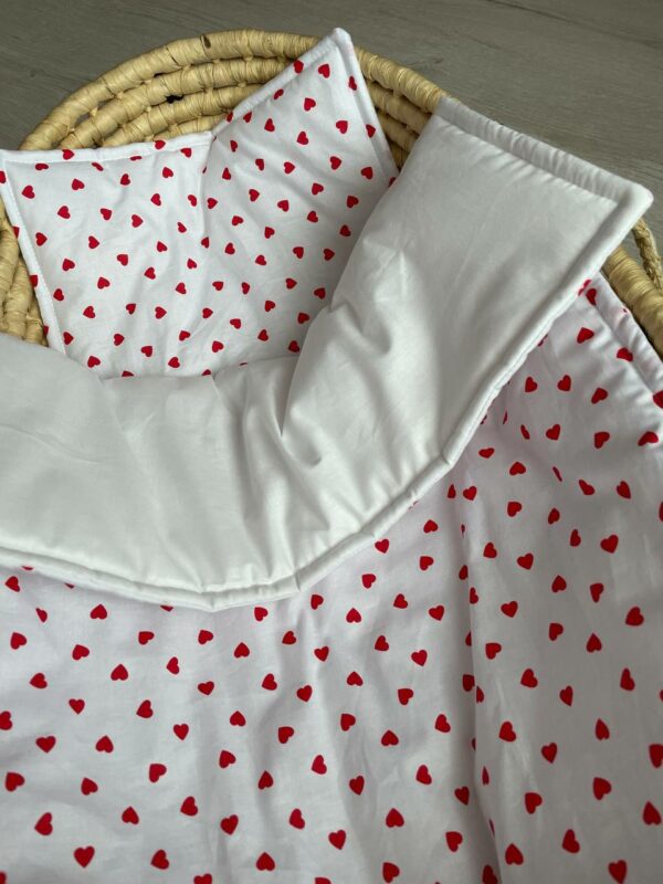 Pościel bawełniana z wypełnieniem – Kosz Mojżesza – Czerwone serduszka